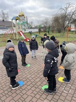 Далі 1 клас залюбки взяв участь у рухливій грі «Веселі стрибки». Діти виконували різноманітні види стрибків: на двох ногах, на одній, стрибки через умовні перешкоди, вправи на рівновагу та швидку зміну напряму. Така гра чудово розвивала координацію, увагу, спритність і вміння взаємодіяти з однолітками.